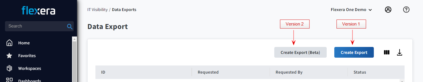 • If you see two buttons for exporting—a Create Export button and a Create Export (Beta) button, you are on a Pre Technology Intelligence Platform version (export version 1 or version 2).